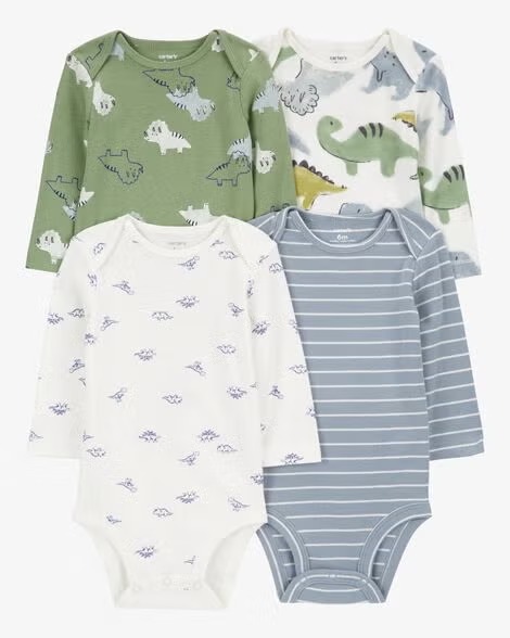 KIT 4 BODIES MANGA LONGA CARTER'S - DINOSSAUROS - MENINO
