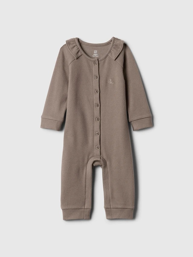 Macacão Gap Baby Soft Brushed Plymouth Rock Brown Macacão supermacio e elástico em malha escovada.