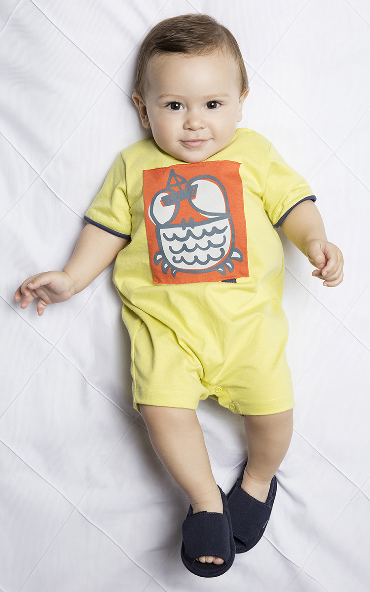 ROMPER MANGA CURTA GREEN KIDS -CARANGUEJO AMARELO - MENINO